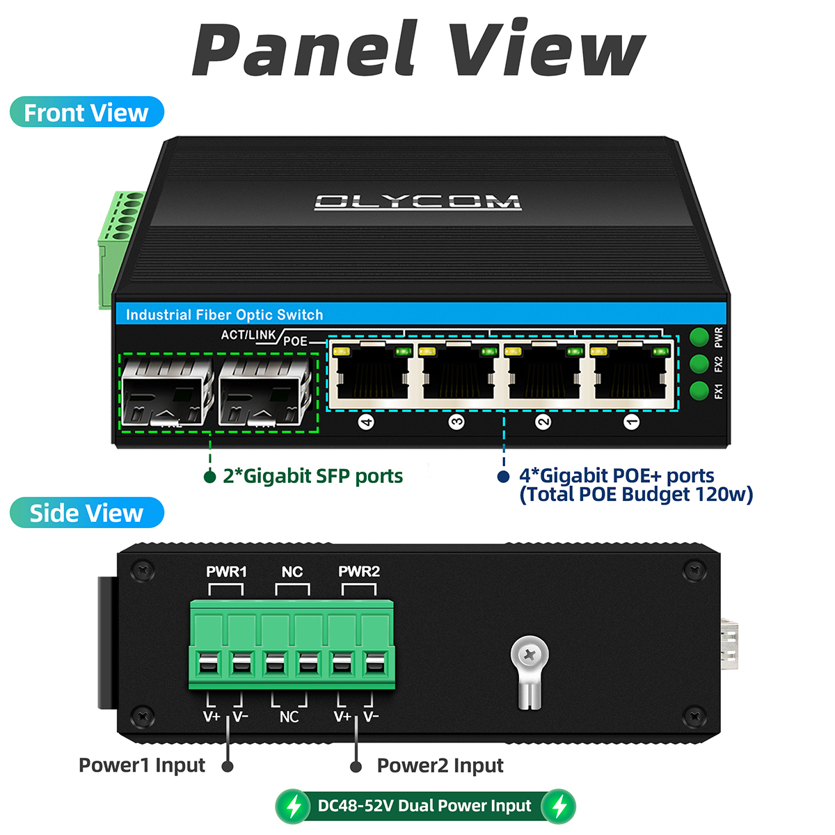 Gigabit POE anahtarı yönetilmemiş eteren anahtarı 120W poe af/at DC48V Güç girişi