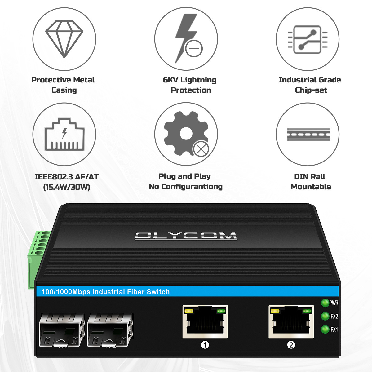 | Ürün Adı | 10/100/1000Mbps Endüstriyel POE Fiber Switch (2F+2TP) |